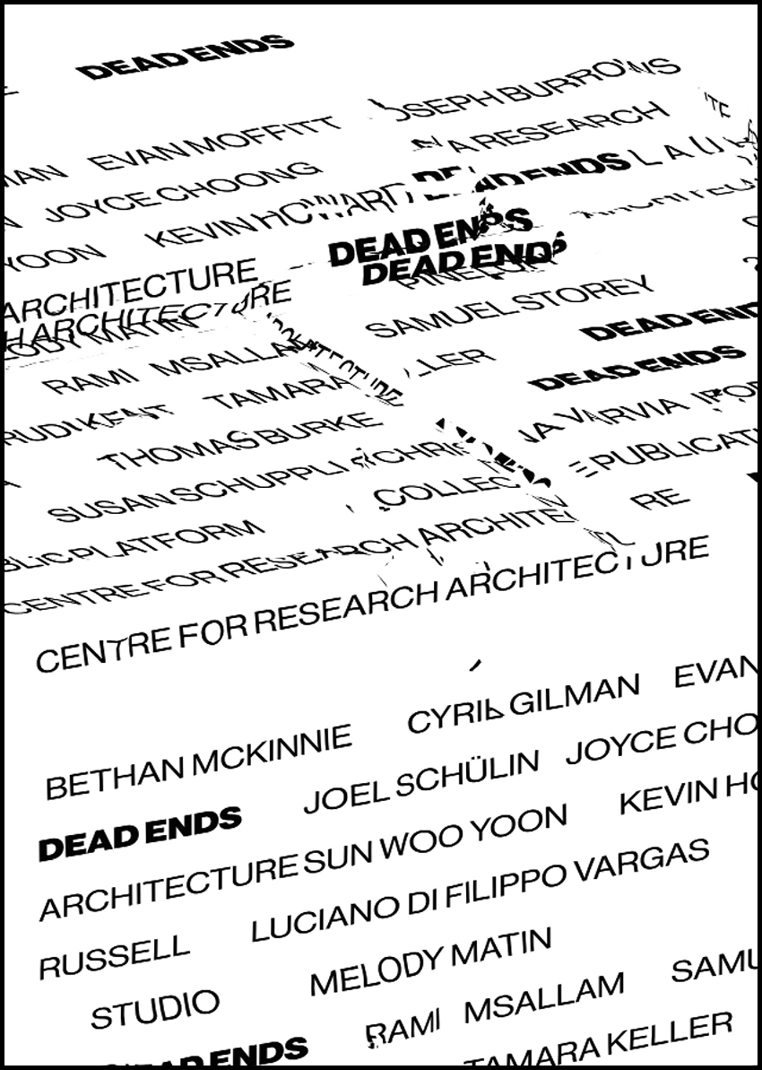 In Dead Ends, students, teachers, and friends of the Centre for Research Architecture will confront the lines of inquiry within their research that ran dry, or were cut off—but produce something else through the critical examination of these “ends.” How do we make these ends operative, use them to carve out new investigative routes? In Saidiya Hartman’s words, how do we “reckon with loss” and “respect the limits of what cannot be known” and yet “dramatize the production of nothing— empty rooms, and silence, and lives reduced to waste”?2